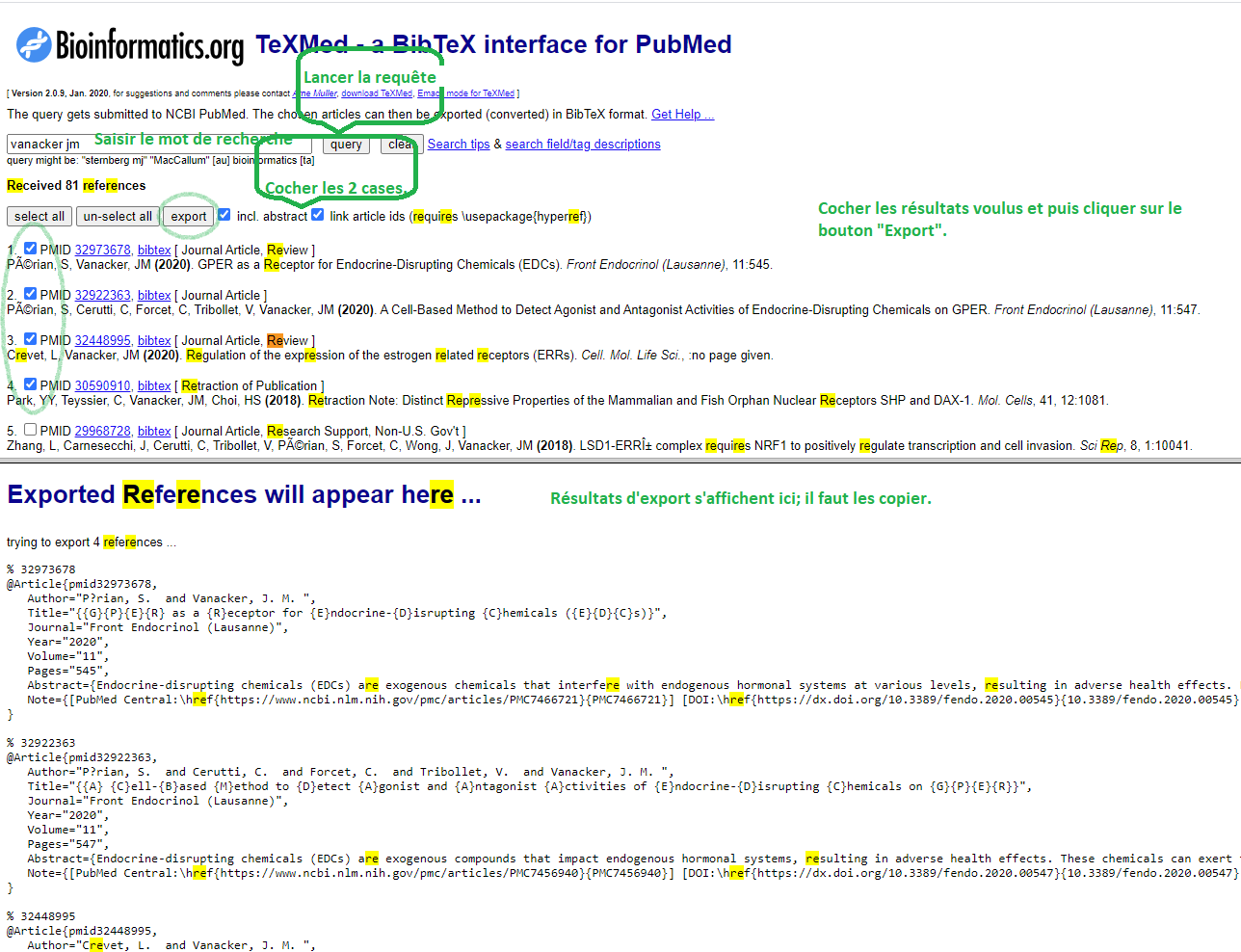 requete export bibtext